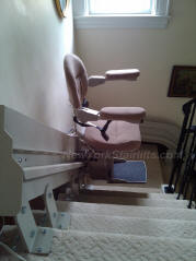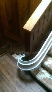 Notice the unique curve in rail, custom designed by NY Stairlift professional installer. |